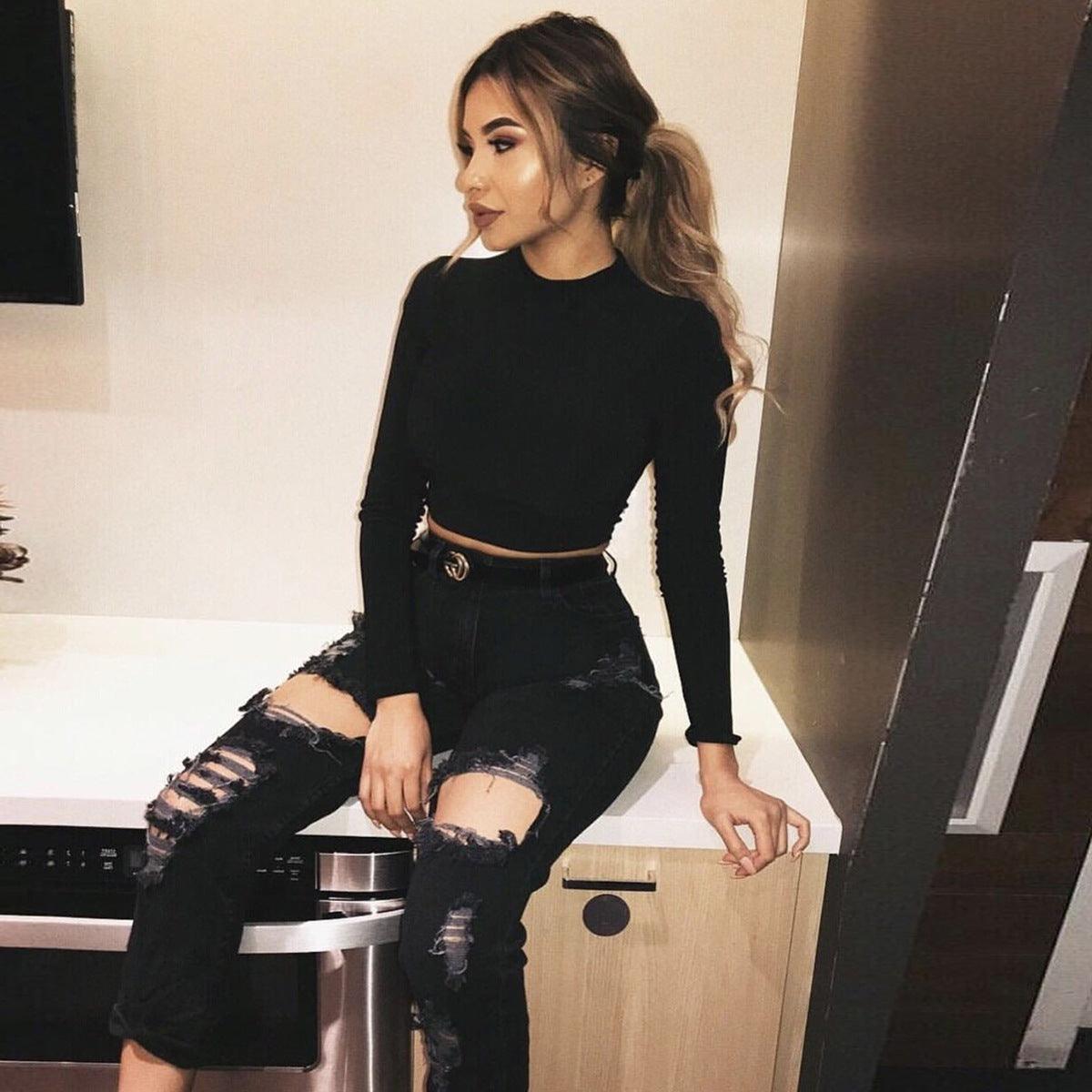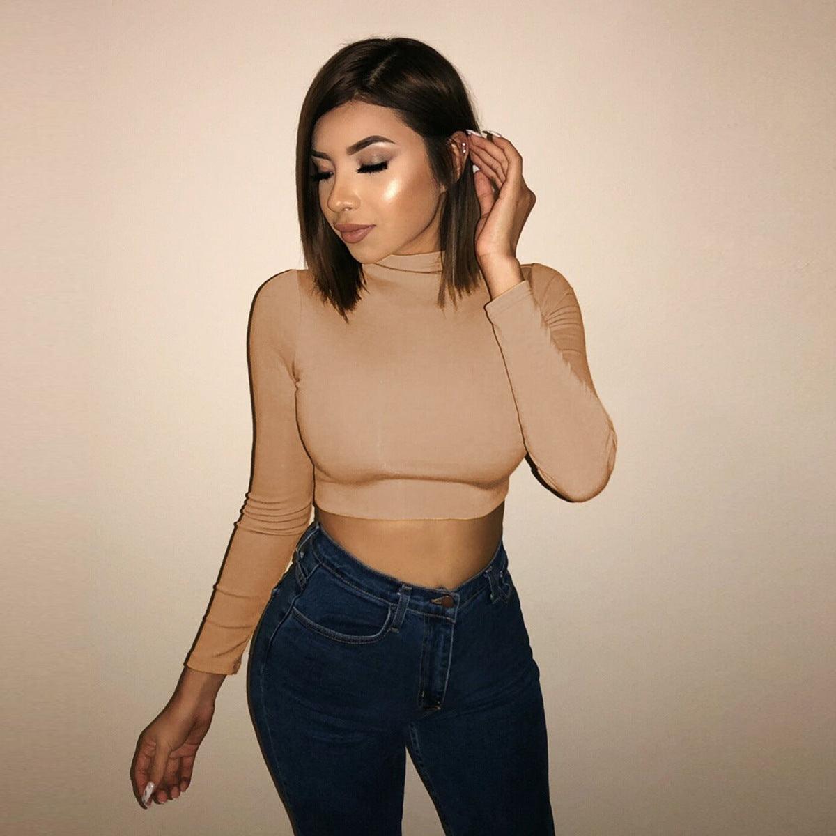 V-neck Lantern Sleeve Midriff-baring Sweater
