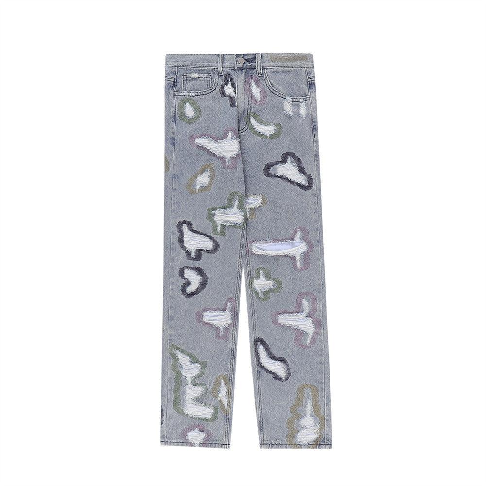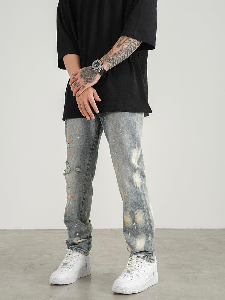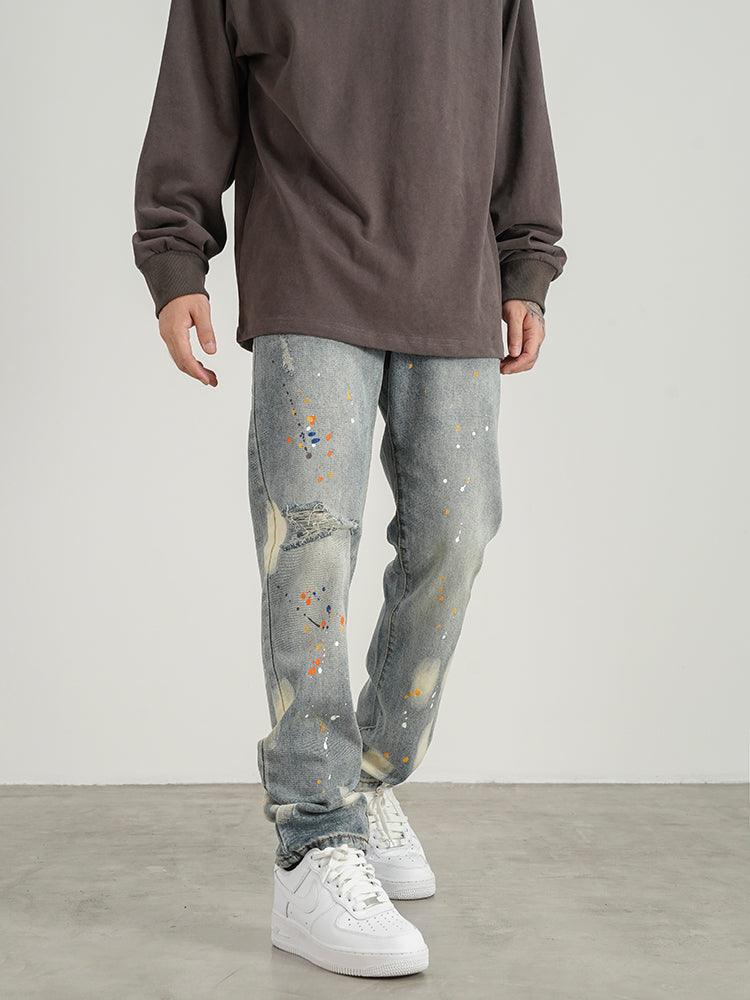 Knife Cut Ink Paint Straight Loose Jeans Men